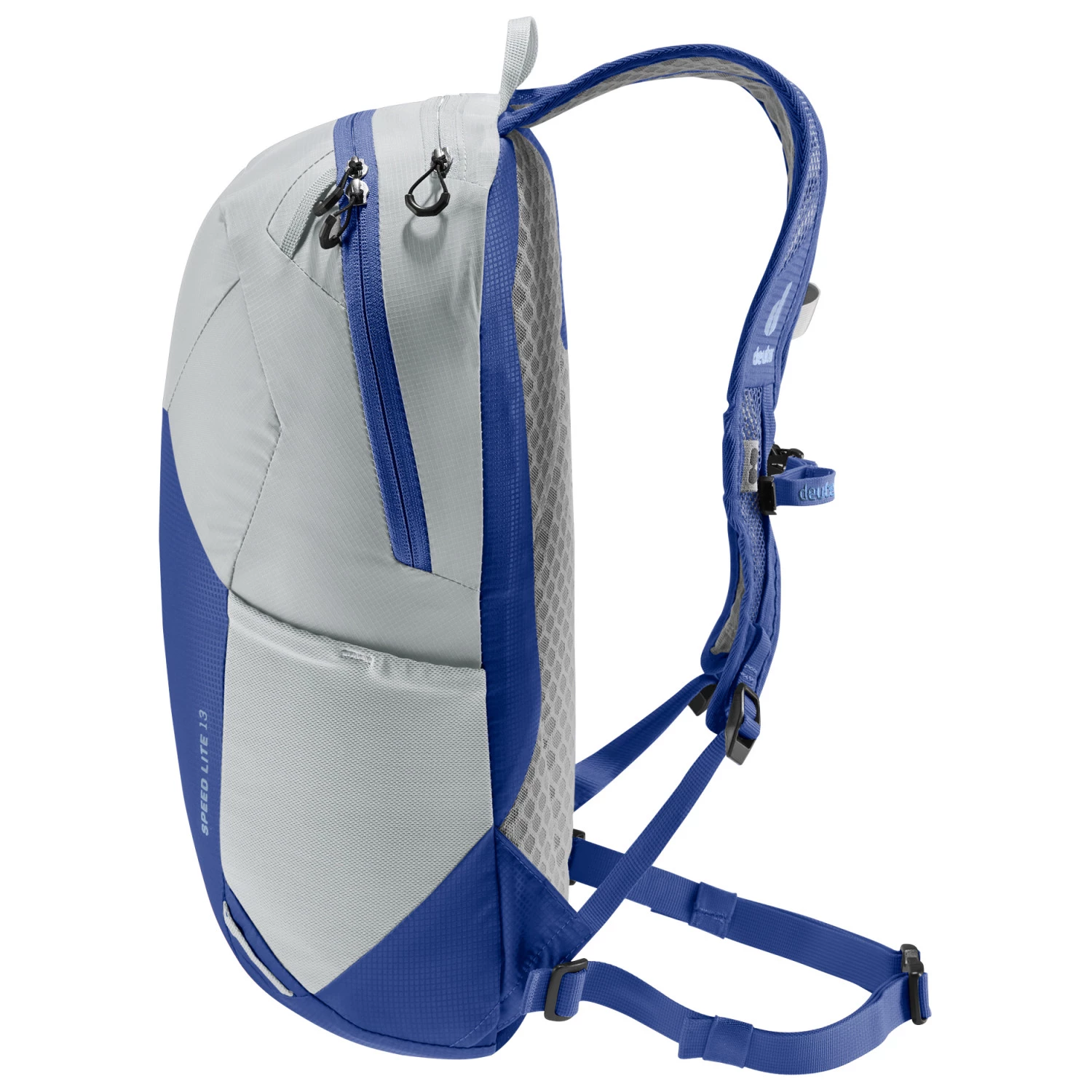 Le compartiment principal peut contenir jusqu’à 13 litres. Il est complété par une poche pour les objets de valeur avec un clip pour les clés, une poche intérieure extensible, deux poches latérales élastiques, une fixation pour les lunettes et des boucles pour le casque et l’équipement. Le système de portage Lite signé Deuter est composé de bretelles et d’une ceinture de hanches ergonomiques et ventilées, d’une sangle de poitrine réglable en continu et d’une partie dorsale respirante. Ainsi, le sac est agréable à porter, même lors de longues randonnées, et répartit la charge de manière optimale sur les épaules et le dos. Avec le sac Speed Lite 13 sur le dos, vous serez toujours à l’aise en transportant vos affaires, même lors d’une étape intense !